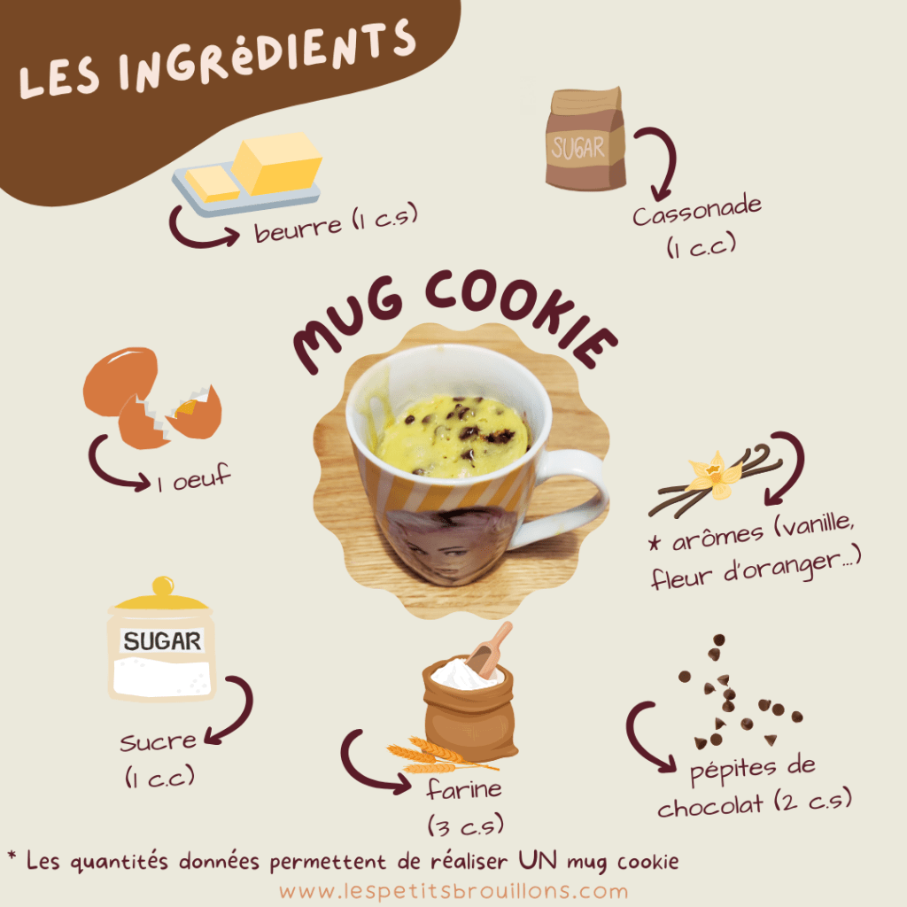Pour cette première « recette du mercredi » je vous propose de cuisiner avec vos enfants un MUG COOKIE. Une recette ultra simple, ultra rapide et ultra sympa à réaliser avec des petites mains. Ici elle a été testée et approuvée par mon moins de 2 ans.