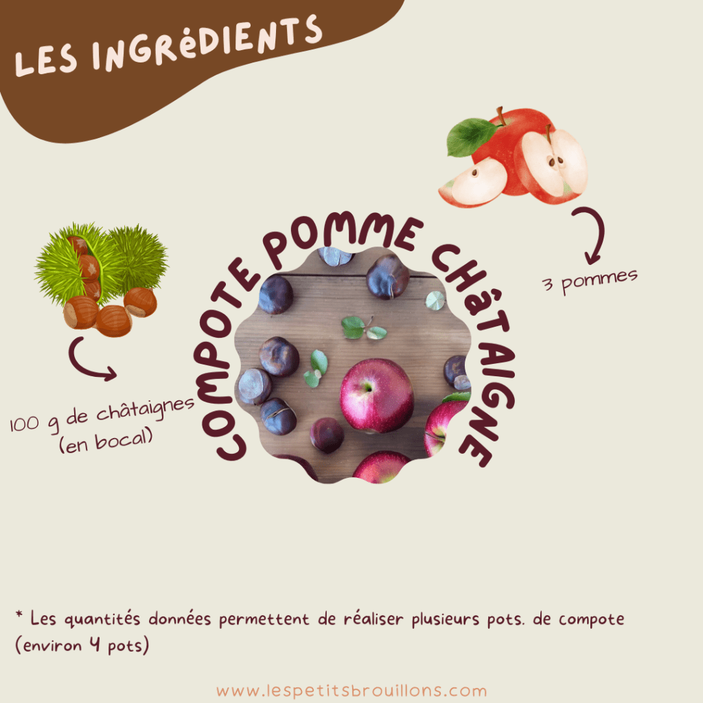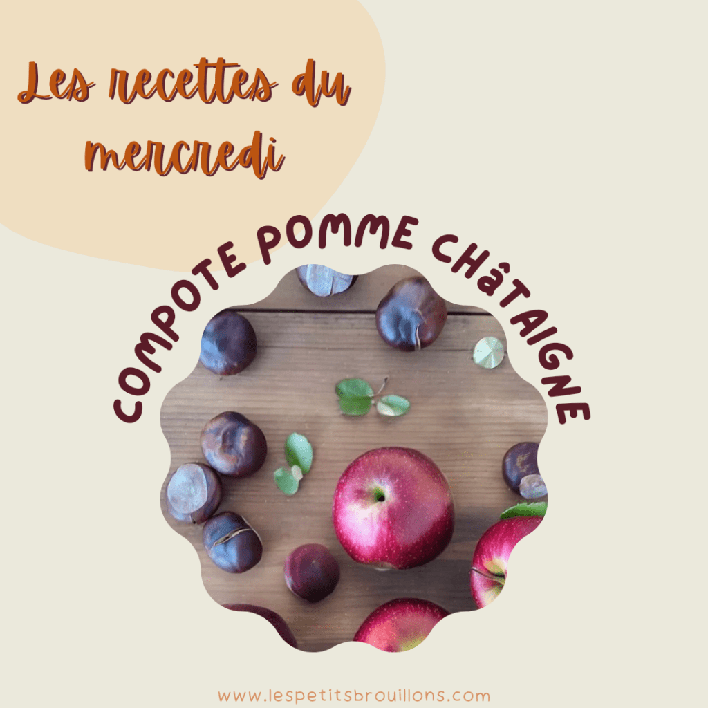 Toujours dans l’idée de vous proposer des recettes simples, avec peu d’ingrédients, des ustensiles de base, beaucoup de manipulation, des découvertes et de l’amusement je vous propose donc aujourd’hui une compote pomme châtaigne 100% fruits. L’objectif de cette recette est de faire découvrir à vos enfants ces deux fruits de saison, de les manipuler, découvrir leurs différents états (dur/mou), leur composition, etc… C’est donc une compote sans mixeur que je vous propose, histoire de bien mettre les mains dans le plat =P Et c’est bien ce qui amuse le plus les enfants !