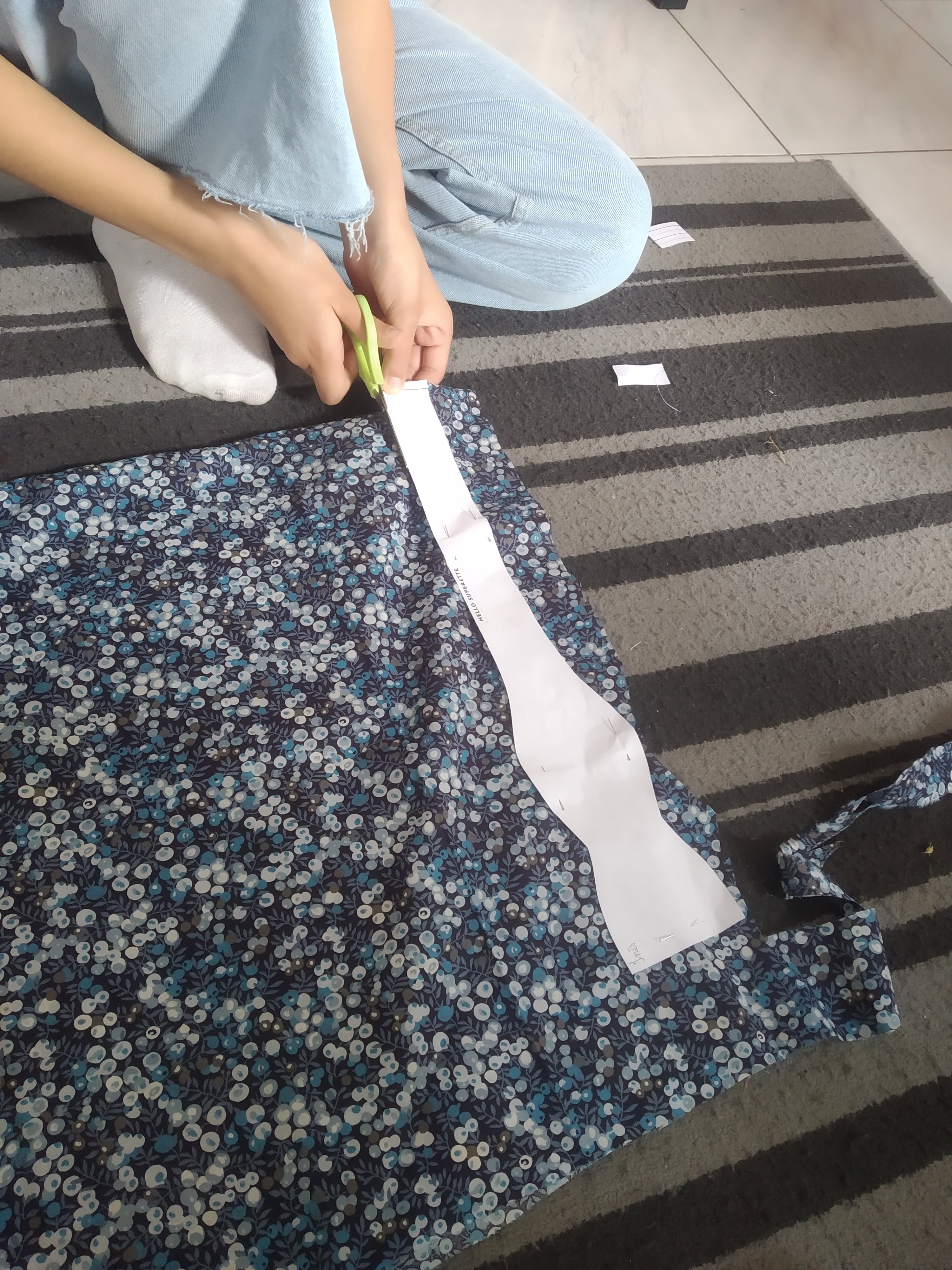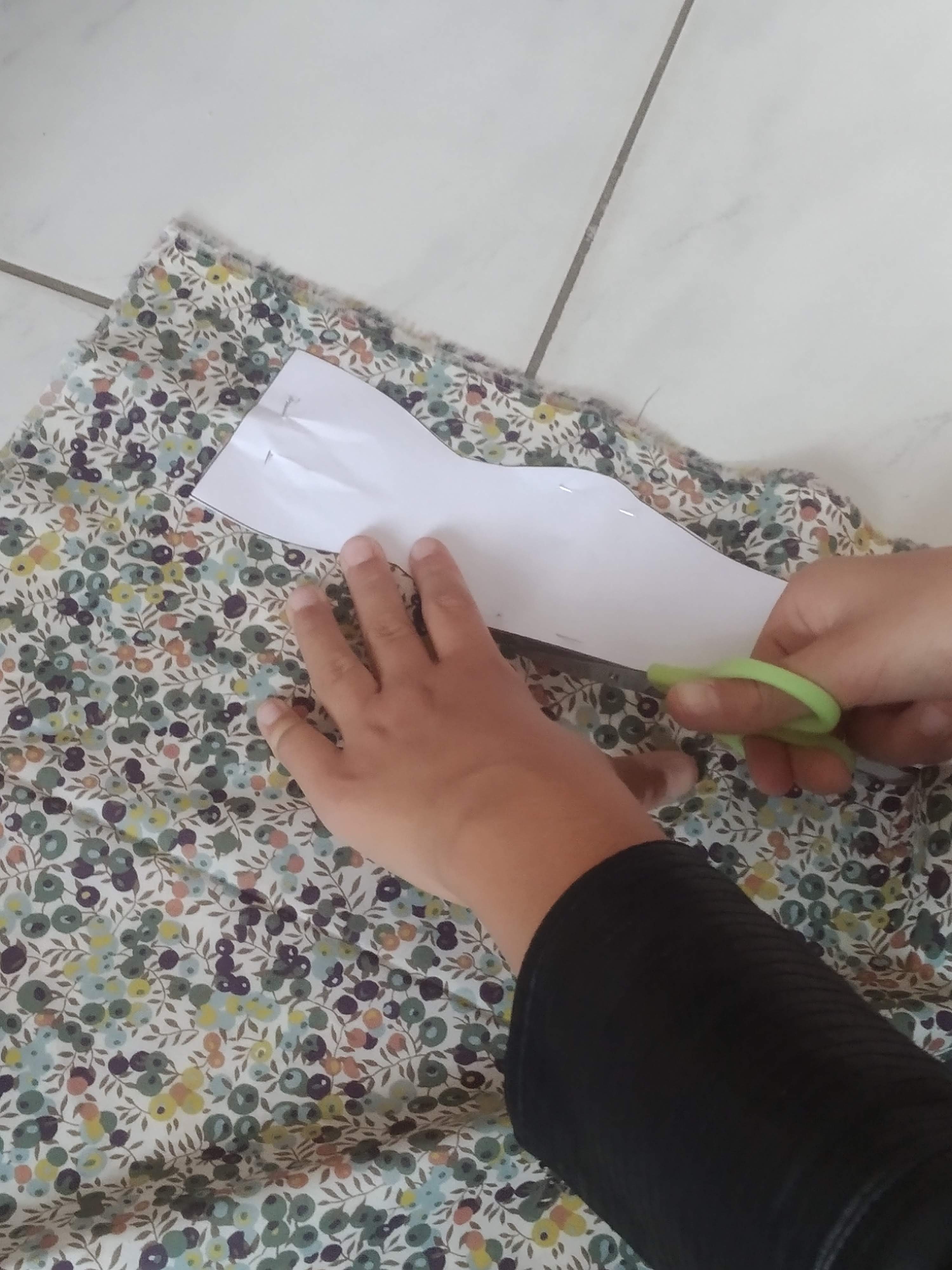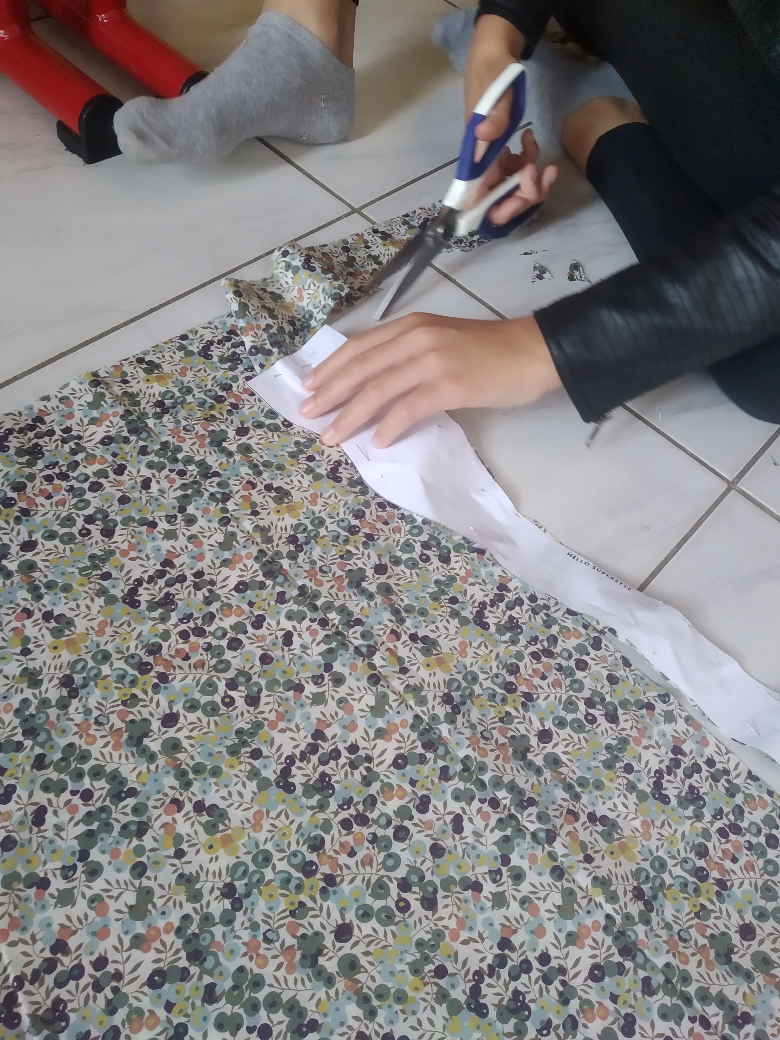 - Etape 2 : épingler le patron sur le tissu puis couper le tissu. (photos 1,2,3)